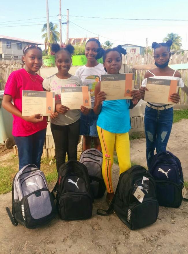 Five (5) students from Belladrum Primary were issued a school bagpack with supplies, the book Unbought and Unbossed by Shirley Chisholm and a one-time education stipend.